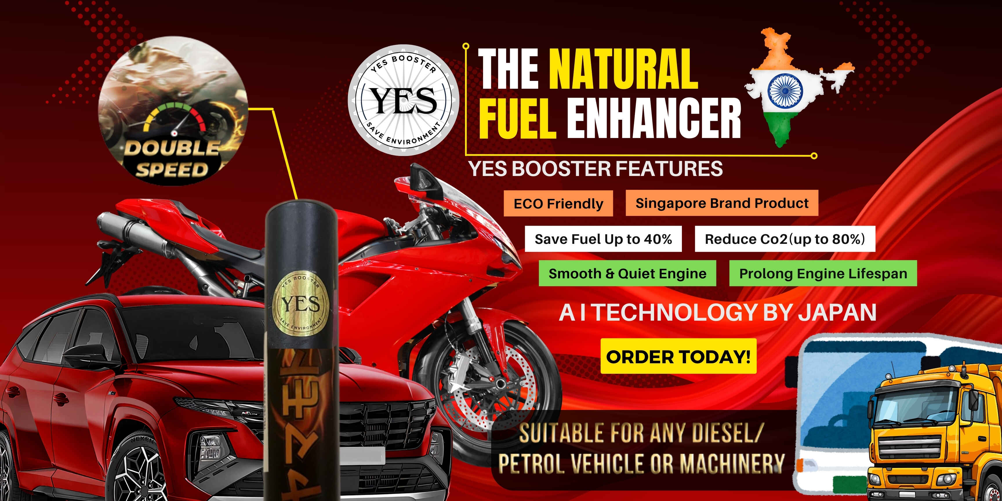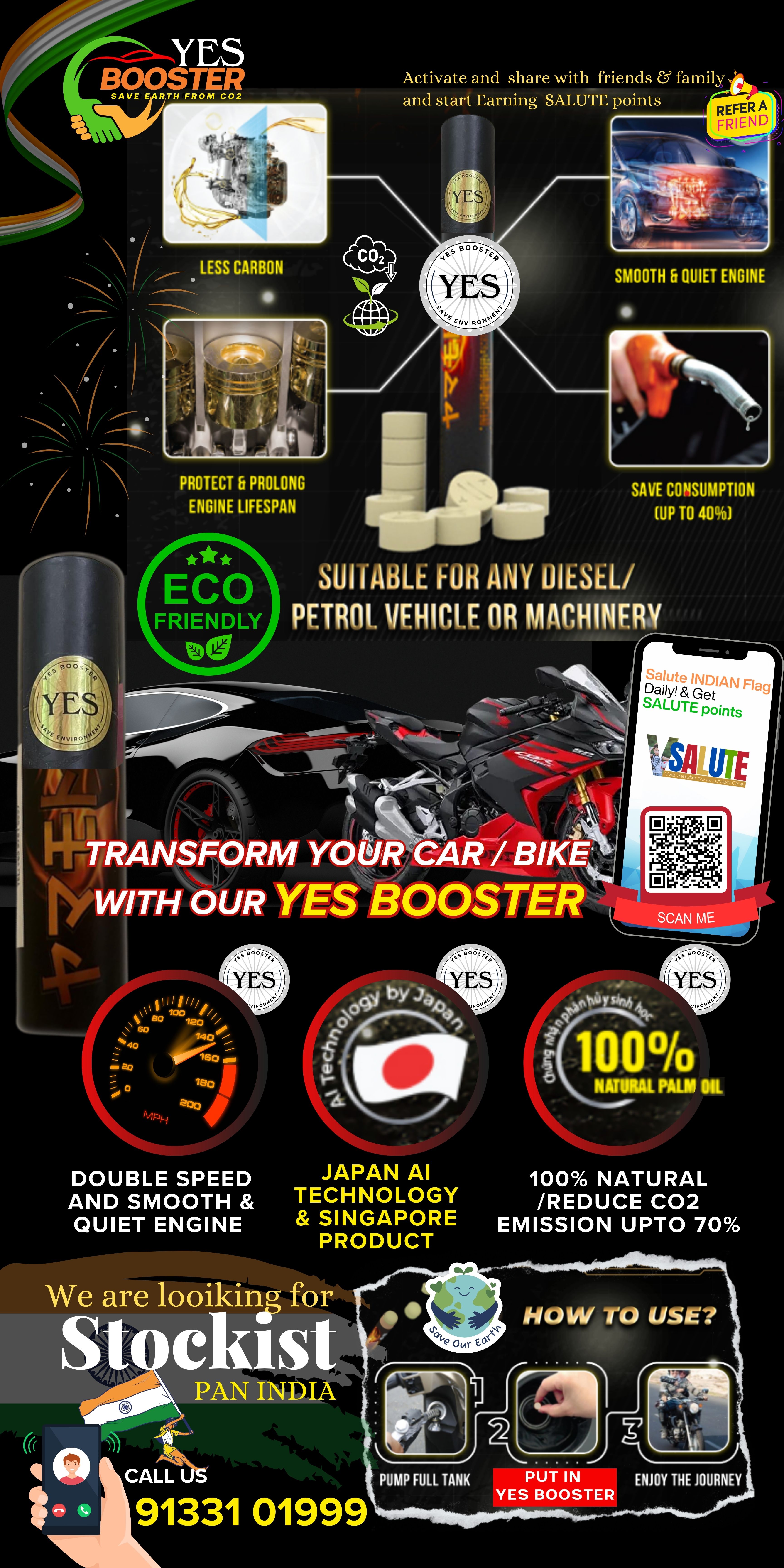 YES Booster is a Revolution technology product first product in INDIA incredible product for engine perfomance and save petrol and earth by reducing Co2.
